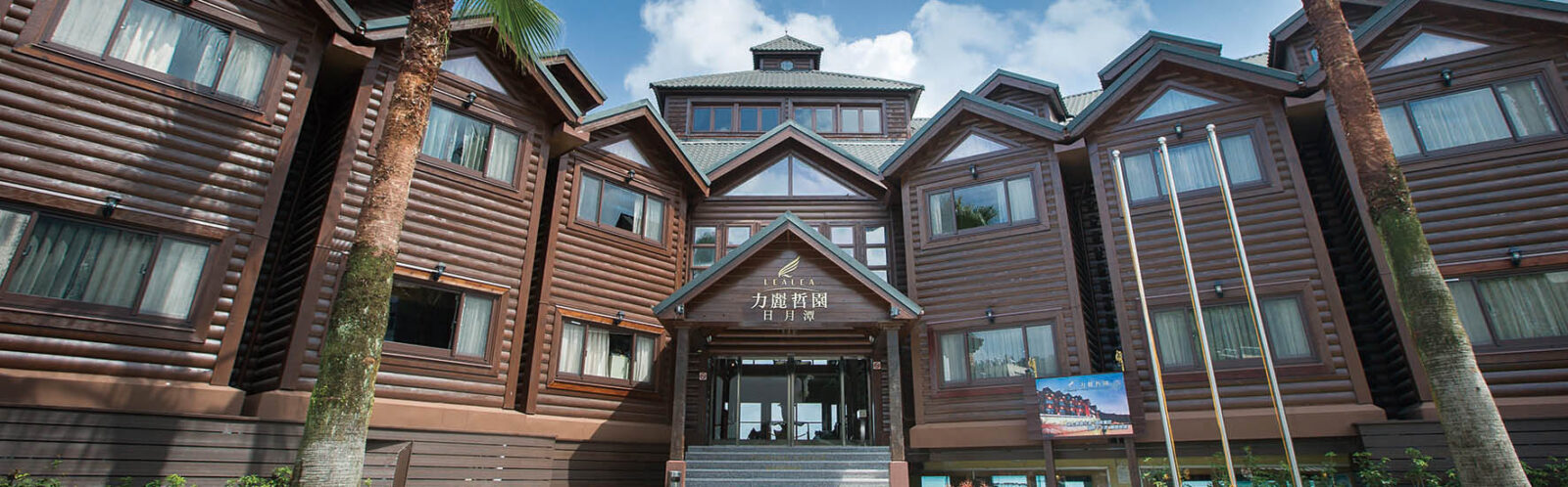 「力麗儷山林會館 日月潭館」門口一整排的椰子樹,搭配木屋造型的建築外觀,彷彿置身國外的氛圍,讓旅人還未走進就開啟度假模式。日月潭館主建物由檜木打造而成,走進大廳就能聞到淡淡的檜木香,加上沿著湖面而建擁有日月潭邊的無敵景觀,還有全台少見房間陽台就能釣魚的獨特體驗,全棟只有45間客房,有亞洲第一大木屋之美名。如果你想感受總統級的渡假美景與服務,更要走訪「力麗儷山林會館 日月潭館」,這裡曾代表日月潭接待過許多國外元首與貴賓,就算只是感受各國元首所坐所見之景,都能有不虛此行,人生真美之幸福感。