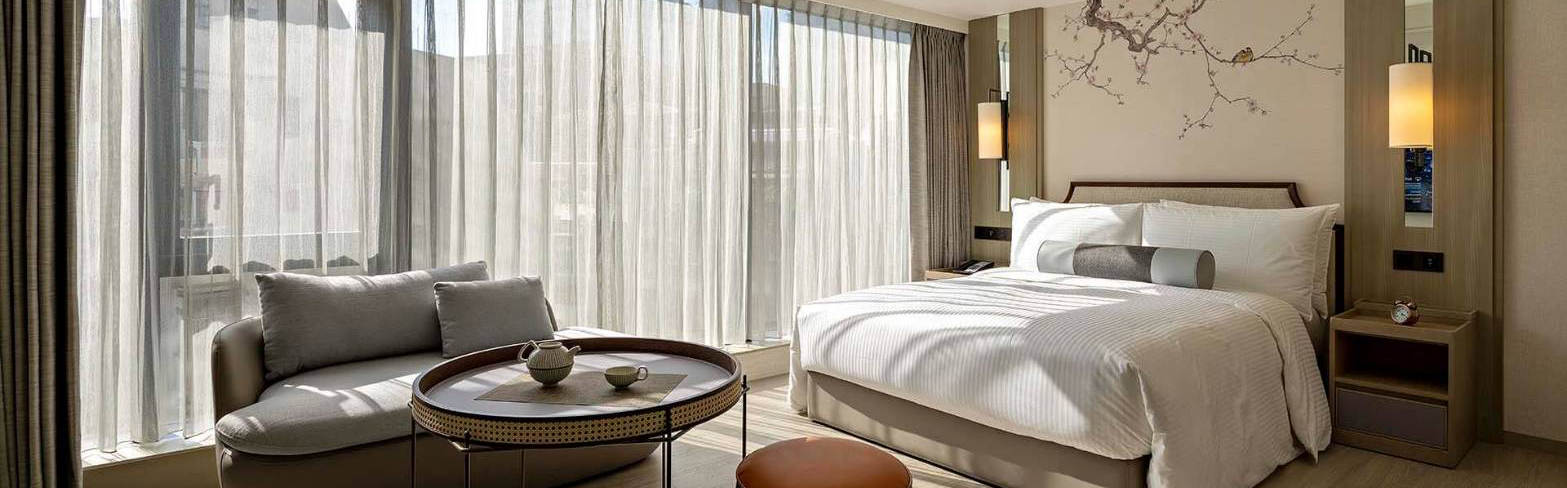 已經蔚為風尚的餐廳聚餐結合飯店住宿一站式圍爐團圓形式,不僅能延長和親友難得的相聚時光、更不受限交通限制,還可以在開懷暢飲後,直接入住酒店獲得充分的休息與舒眠。酒店推出長住瀚寓Long Stay住房專案,多種房型擁有10-14坪的寬廣空間,配備基烹調設備,部分房型設置簡易廚房,可以眺望101城市風景的景觀、營造如家般的自在舒適環境與氛圍,並有得天獨厚的交通便利的優勢,非常適合春節期間長假,做為走春、訪友、享受台北都會假期的據點。專案提供連續入住3晚至14晚的優惠,天數越多優惠越多。