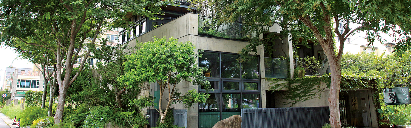 襲園本身是綠建築,建築空間裡外一片綠意盎然,隨著四季更迭,洩露了建物的表情。(攝影:Vicky)