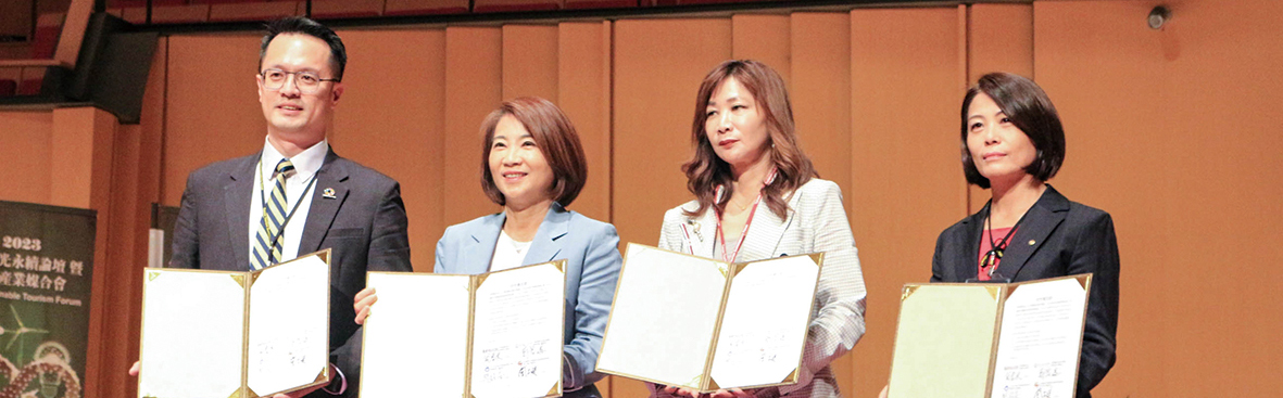 在開幕式上,屏東縣長周春米也與活動的策辦單位台灣旅行業國民旅遊發展協會理事長蔡子建、台北市旅行商業同業公會理事長駱炫宏、屏東縣觀光創生聯盟理事長郭宥婕三方,共同簽署MOU合作備忘錄,藉此希望帶領屏東觀光產業邁入新紀元。