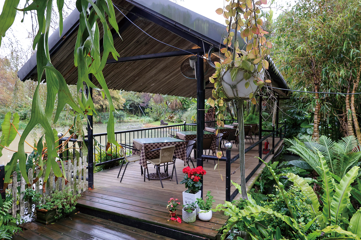 蓮花田是觀音區最著名的景觀,而「莫內的花園」更是結合了當地特色和印象派大師莫內名畫「日本橋」的精髓,將佔地1,400多坪的園區設計規劃為綠意盎然、花木扶疏的美麗花園。由於老闆善於照顧管理,儘管蓮花是夏季的產物,在春天拜訪,仍可觀賞到各種不同季節的花卉,花園每個角落依然令人驚豔,優美的生態環境,還不時有白鷺鷥飛過。 在春、夏兩季來到莫內的花園,可以選擇戶外座位區用餐,是欣賞日本橋的最佳角度。在莫內的花園除了能悠閒地喝杯香醇的咖啡或清爽的花草茶外,店內還供應全蔬食的料理,如果吃膩了大魚大肉,不妨在這清新舒適的環境享用無負擔、少油少鹽、保留食物原味鮮甜的精緻蔬食,在賞景之餘也能心清靈靜的細細品嚐蔬食的美味。