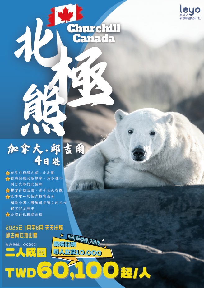 邱吉爾是世界聞名的「北極熊之都」,同時因位於極光帶中心地,一年當中有超過300晚可見到極光。