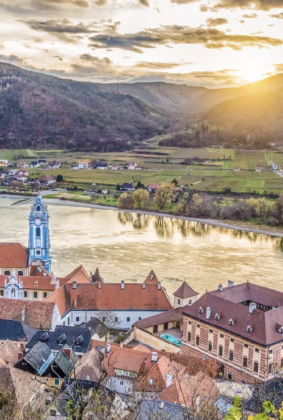 瓦豪河谷葡萄園閃耀在陽光下;