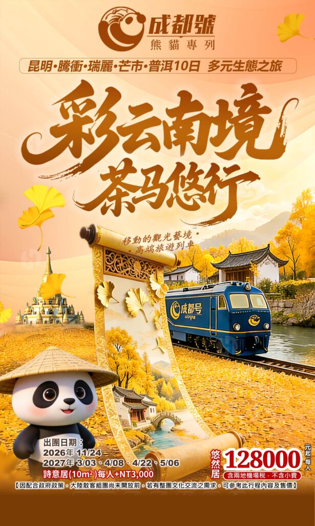 這不僅是一張車票,而是一把開啟「雲南南境・茶馬古道」歷史與生態大門的金鑰匙。我們特別規劃了台北與高雄雙點同步出發的尊榮行程,帶您優雅地駛入彩雲之南。