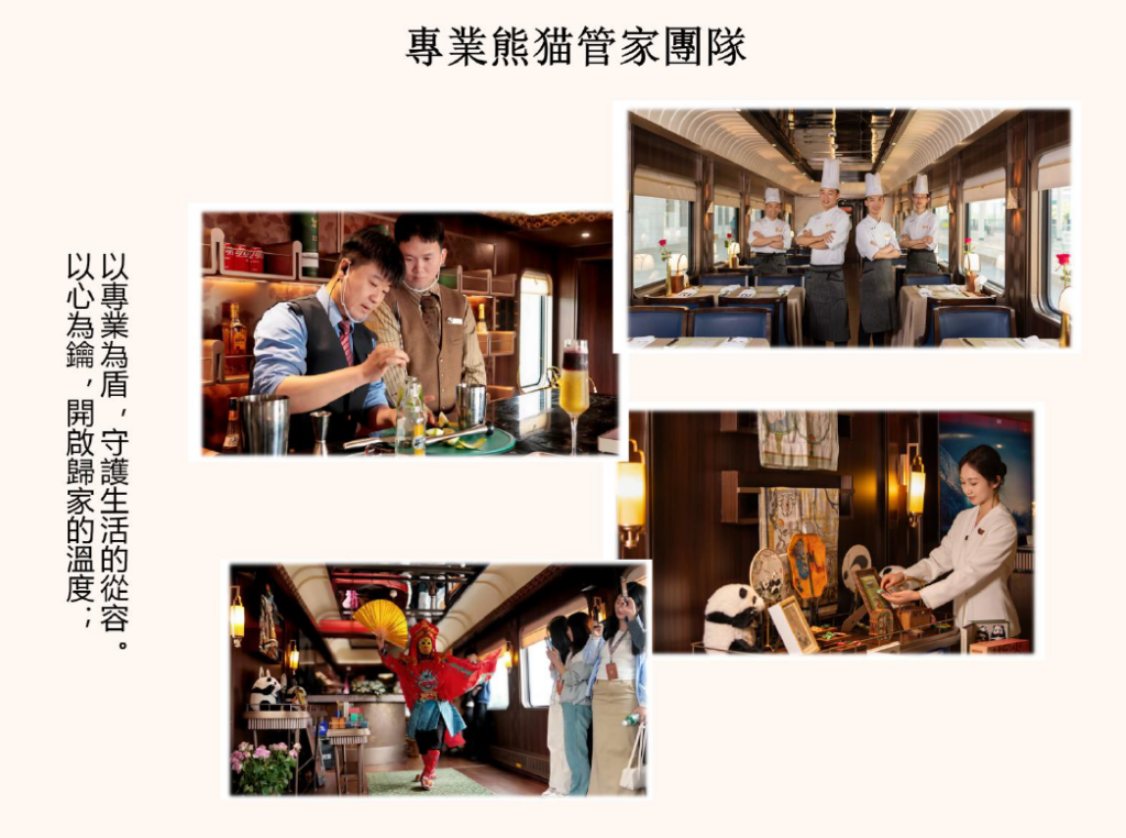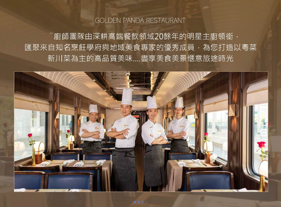 「金熊貓」景觀餐廳:由名廚掌勺,提供地道的川滇風味美食。在行駛的列車上享用精緻的過橋米線或普洱茶宴,讓味蕾與視覺同步旅行。