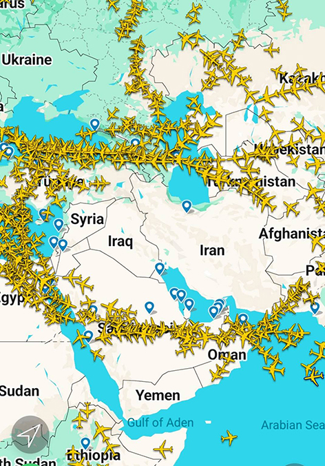 由於中東地區的局勢目前正在快速演變,航班的繞道、取消與油料重算情況非常頻繁。